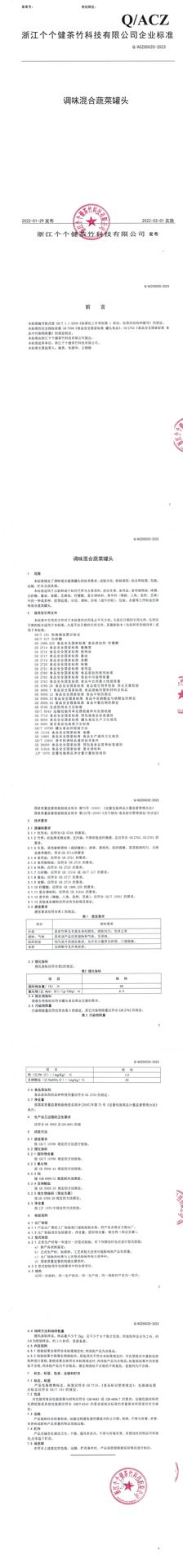 • 調(diào)味混合蔬菜罐頭企業(yè)標準